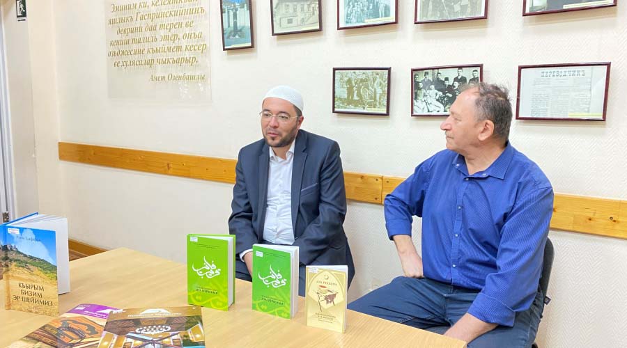 4 июня в преддверии великого мусульманского праздника Къурбан Байрам в нашей библиотеке прошло открытие выставки — вернисаж «Праздник Веры и Разума», представившая поэтические работы заместителя муфтия мусульман Крыма Раима Гафарова в художественном оформлении Умерова Талята.