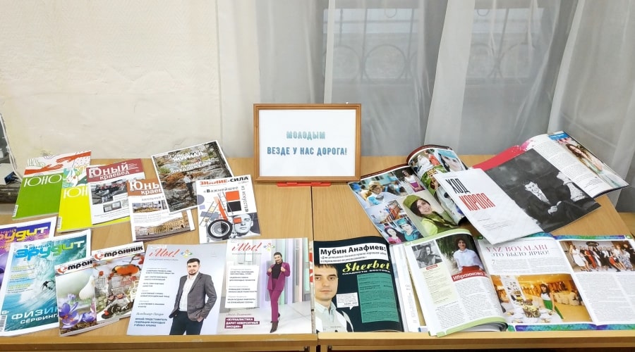 Кроме того, была организована книжно-иллюстративная выставка «Молодым везде у нас дорога!», на которой представлены материалы с фотографиями молодых людей, достигших успеха в различных сферах, и которые, возможно, послужат вдохновением для других людей.