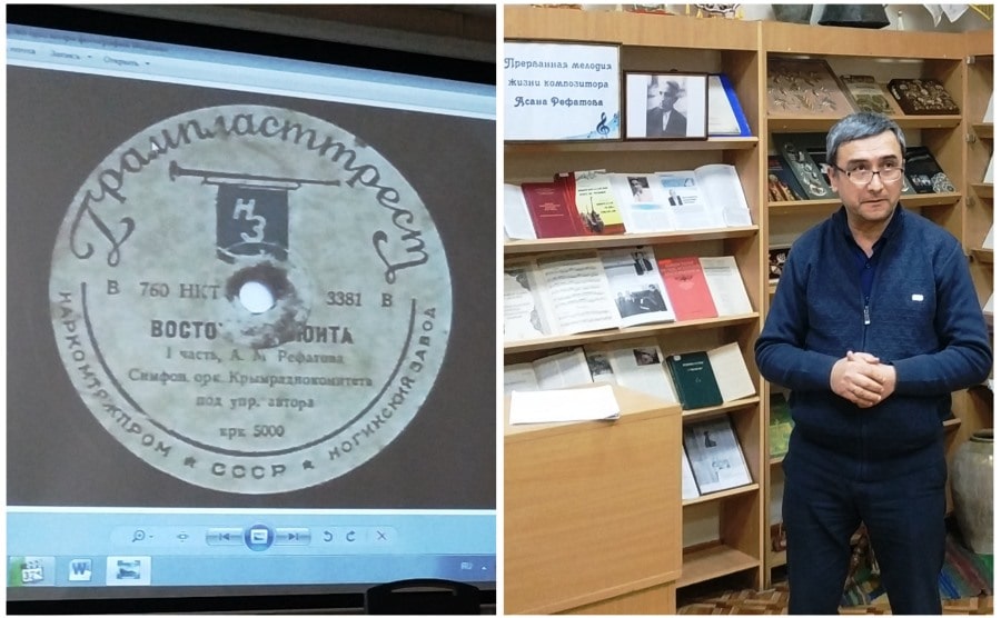 Музыковед, преподаватель Симферопольской детской школы искусств Линур Асанов рассказал о своей исследовательской работе по изучению творчества Асана Рефатова. Гости узнали о том, как в начале 2000-х годов была обнаружена грампластинка с произведением «Восточная сюита» и послушали его фрагмент. Запись была сделана в 1936 году симфоническим оркестром Крымского радиокомитета под управлением автора – Асана Рефатова.