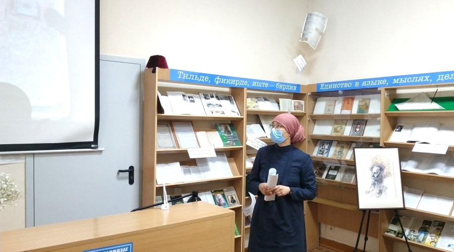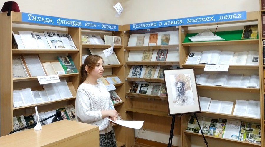 Заведующая отдела редких книг, рукописных и архивных материалов Медине Алимова представила презентацию «Крымские татары в войне 1941-1945 гг.» по материалам архивного фонда библиотеки, в которой освещается работа отдела в библиотечных проектах, таких как акция «Бессмертный полк», «Треугольники надежды», «Война в судьбе моего народа».