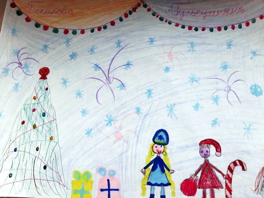 Гульсум Бекирова подготовила рисунок с Дедом Морозом и Снегурочкой.