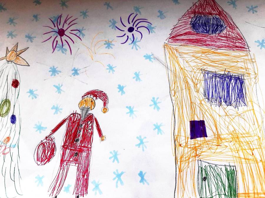 Мустафа Бекиров, который тоже является очень активным участником, подготовил несколько работ: рисунок с Дедом Морозом,