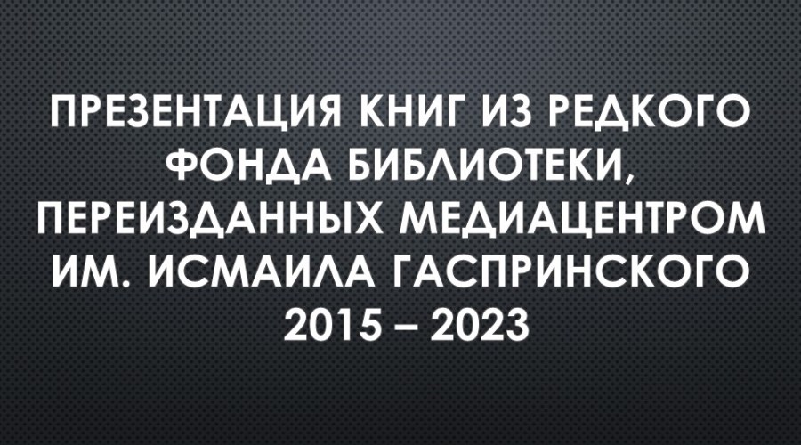 Для удалённого пользователя на сайте учреждения размещена электронная презентация «Книги из редкого фонда библиотеки, переизданные Медиацентром им. И. Гаспринского с 2015 – 2023 г.г.».