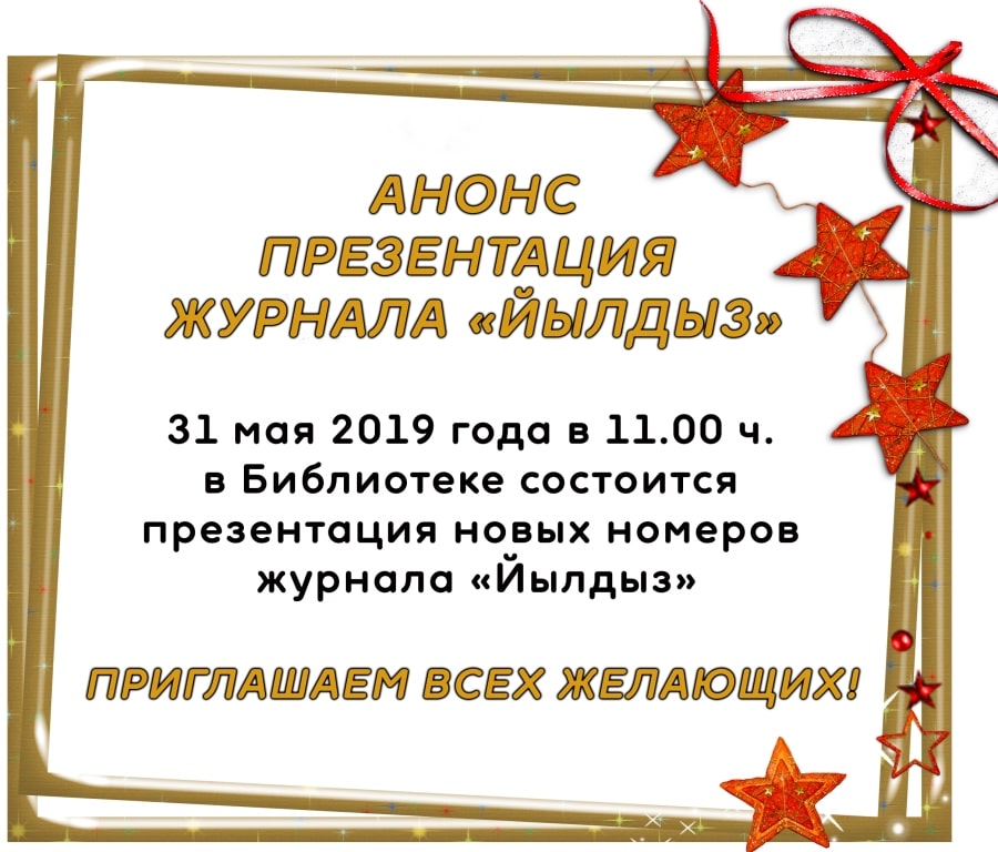 Анонсы и объявления Бектемиров Эльдар 02.05.2019 0 Комментарии Презентация новых номеров журнала «Йылдыз» («Звезда»)