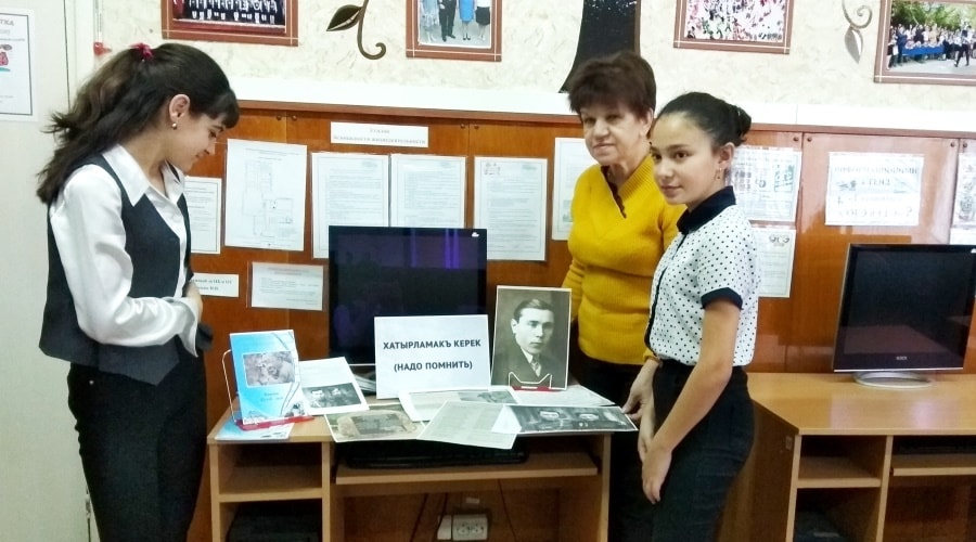 Преподаватель истории Гульнара Сейтджалил провела исторический экскурс, рассказав учащимся старших классов о том, что такое Холокост. Главный библиограф отдела обслуживания пользователей библиотеки Диляра Белялова презентовала информационный буклет «Кинооператор Кеннан Кутуб-заде» и провела обзор-презентацию выставки «Хатырламакъ керек» («Надо помнить»).