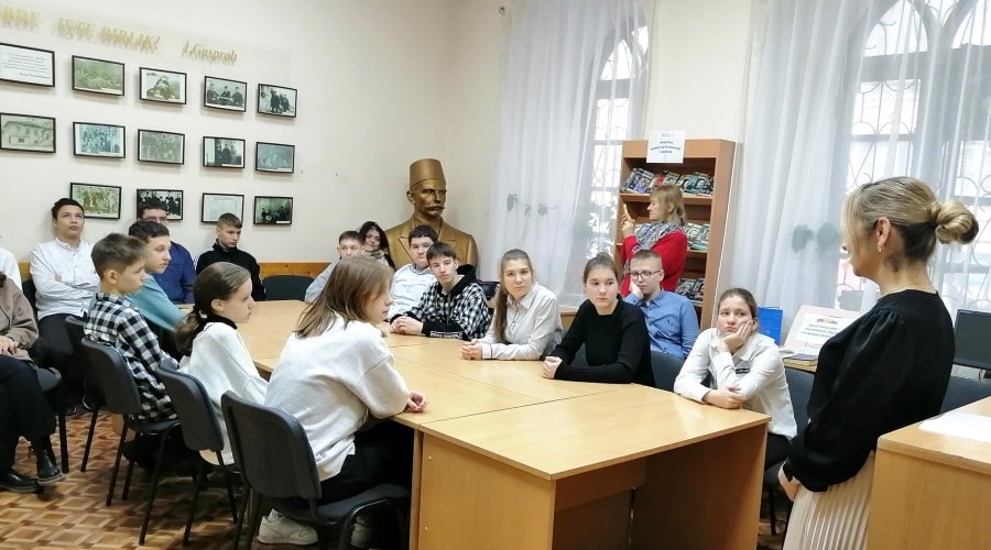 Мастер-класс предварил исторический экскурс об истории здания библиотеки, о деятелях крымскотатарской культуры. Большой интерес вызвала личность Исмаила Гаспринского, имя которого носит учреждение. Диалоговый формат мероприятия вызвал живой отклик у учащихся. Также, огромное внимание у присутствующих вызвала газета «Терджиман», полной коллекцией которой располагает библиотека, журналы «Женский мир» и «Мир детей», дореволюционные издания учебной литературы и переводы русской классики на крымскотатарский язык.