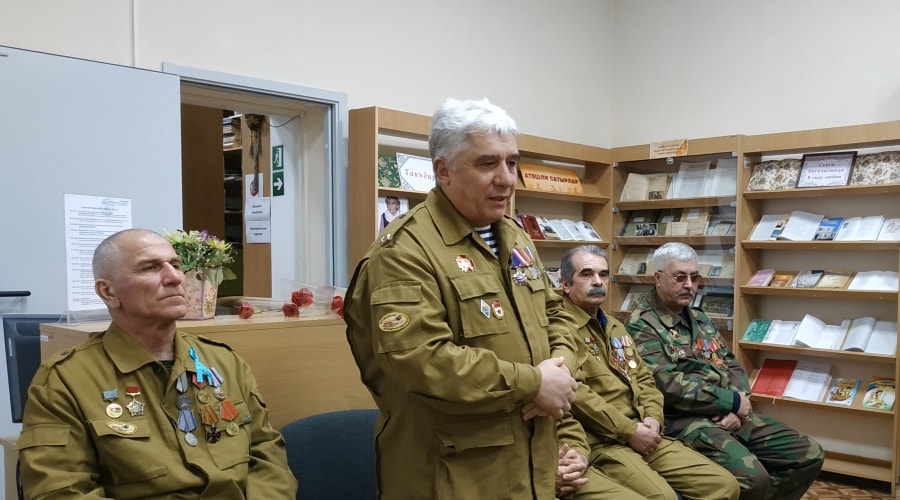Ибраим Ахмуллаев от имени воинов-афганцев Крыма поблагодарил коллектив библиотеки за организацию встречи со школьниками.