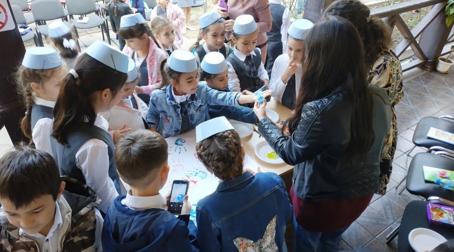 Волонтеры библиотеки провели с юными читателями КРАСочную АВТОГРАФ-сессию, в рамках которой дети оставляли на бумаге свой след, голосуя тем самым за развитие родного языка и крымскотатарской детской литературы.
