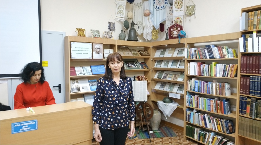 В День крымскотатарской письменности и культуры библиотечный фонд пополнился новыми документами. Заслуженный журналист Республики Крым Светлана Рыжкова преподнесла в дар библиотеке Гаспринского свои авторские сборники, а также диск с записью телевизионной программы «ЛИК: литература, искусство, культура» о жизни и творчестве писателя Нузета Умерова.