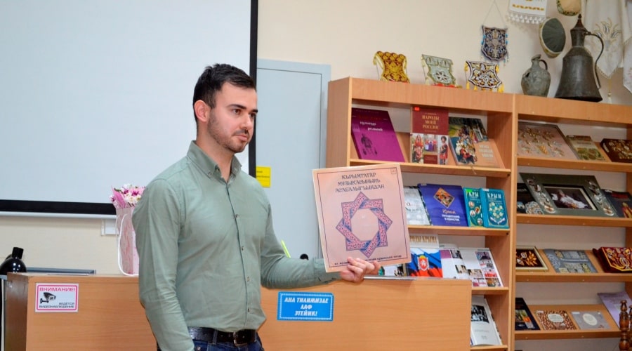 В гостях в библиотеке побывал талантливый исполнитель крымскотатарских танцев Михаил Пурювкин, который поделился воспоминаниями о многолетней работе на поприще искусства, сотрудничестве с легендарными крымскотатарскими артистами и хореографами.
