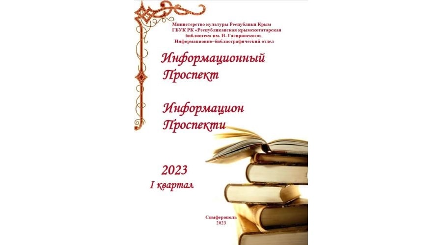 Информационно-библиографический отдел ГБУК РК «Республиканская крымскотатарская библиотека им. И. Гаспринского» в целях эффективного информирования пользователей предлагает презентацию литературы «Китаплар алеми» («Книжный мир»): «Информационный проспект новых поступлений» за I квартал 2023 года.