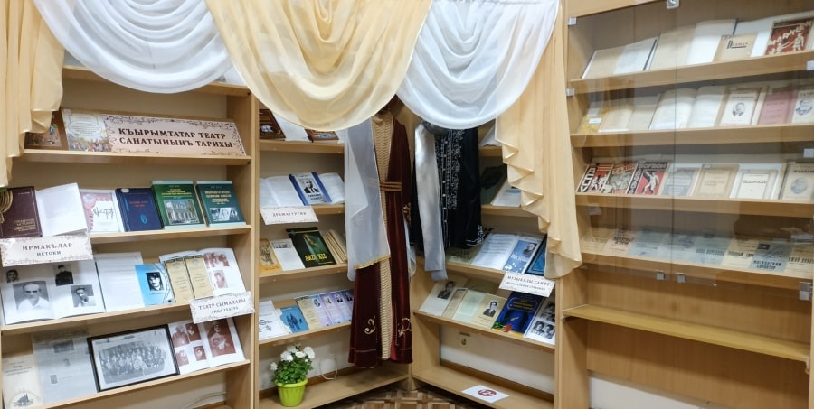 Сотрудники библиотеки презентовали книжную выставку «Къырымтатар театр санатынынъ тарихы» («История крымскотатарского театрального искусства»), а также книжно-документальную выставку «Театр: текрарланмаз аньлер» («Театр: неповторимые мгновения») на основе материалов из редкого фонда.