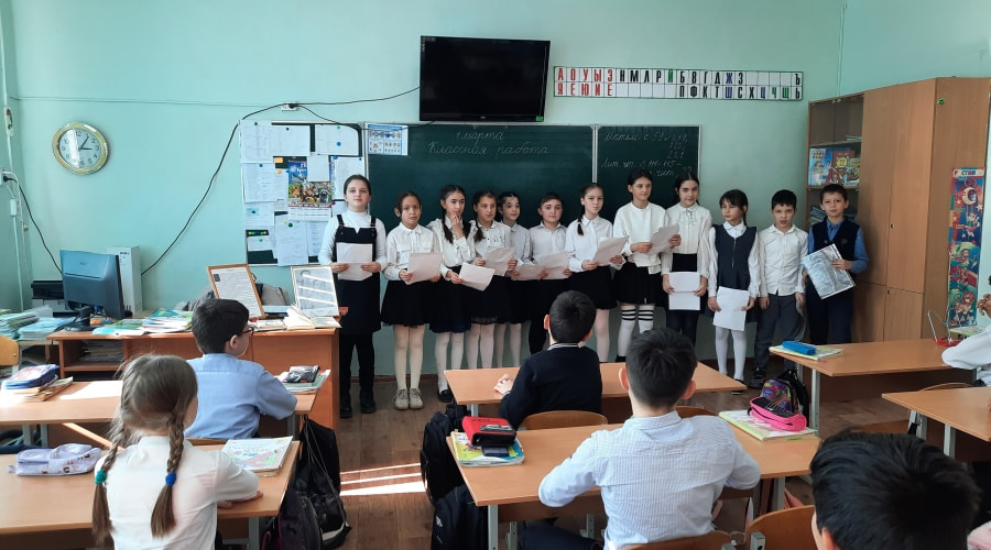 Учащиеся четвертого класса прочитали вслух такие стихотворения поэта, как: «Меним битайым» («Моя бабушка»), «Асанчык ве карылгач» («Асанчик и ласточка»), «Зерачык» («Зерочка»), «Даг ве чобан» («Гора и пастух»), «Ана сёзю» («Слово матери») и другие.