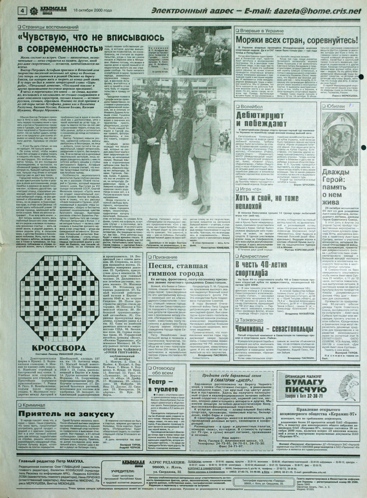 Электронная библиотека Бектемиров Эльдар 30.03.2018 0 Comments Крымская газета, 18 октября, 2000, стр.4
