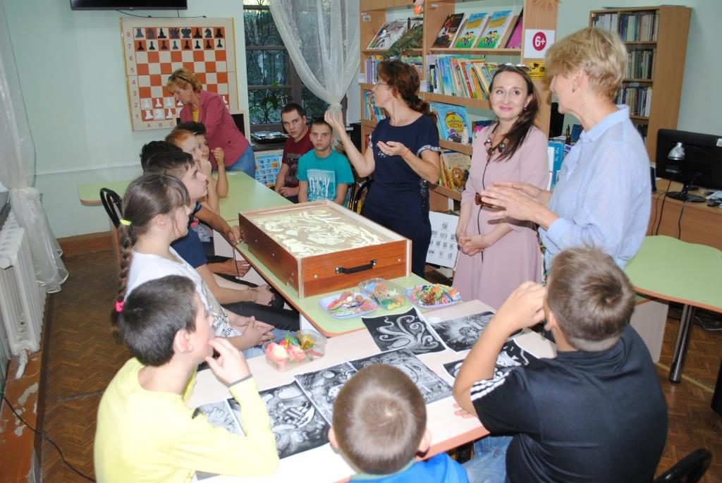 Бакаева Лалена провела мастер-класс по песочной анимации. Главной темой песочных картин стала тема мира. Каждый участник мероприятия «нарисовал» свою картину мира.