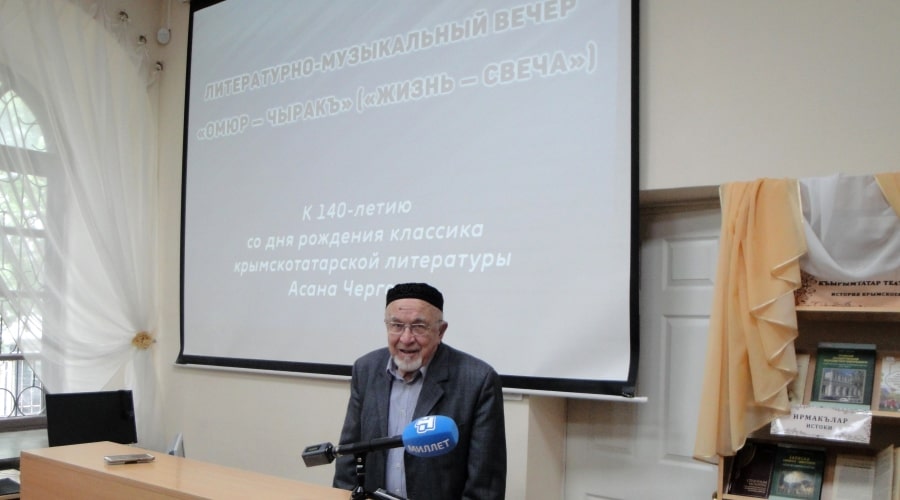 Доктор филологических наук, профессор Исмаил Керимов рассказал участникам вечера о творческой биографии поэта. Асан Чергеев был дважды арестован. В первый раз он был посажен в тюрьму в 1912 году за поэтическую поэму «Эшит, мевта, не севлеюр» («Послушай, о чем говорит покойник»), в которой изобличал социально-политические устои общества.