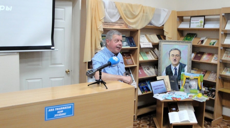 В рамках мероприятия сотрудниками библиотеки была презентована выставка-знакомство «Асан Чергеевнинъ шиирий алеми» («Поэтический мир Асана Чергеева»), на которой вниманию читателей были представлены произведения классика и литература о его творчестве.