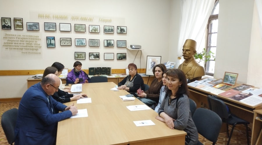 Специалисты отдела обслуживания пользователей провели обзор у книжной выставки «Гаспринскийни окъуймыз» («Читаем Гаспринского»), подготовленной на основе фондов библиотеки.