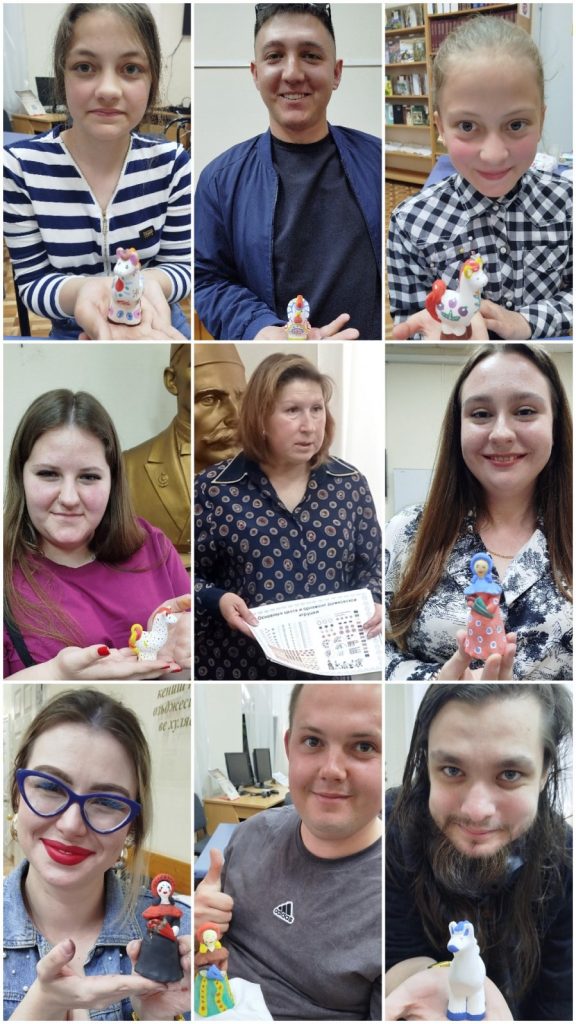 В ходе занятия участники расписали фигурки, украсили их оригинальным орнаментом, проявив творческие способности. Для росписи были доступны три вида дымковских фигурок: барыня, петушок и лошадка.
