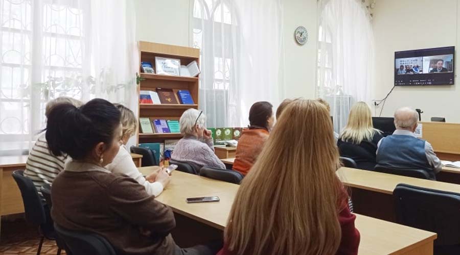 Заведующая отделом редких книг, рукописных и архивных материалов ГБУК РК «РКБ им. И. Гаспринского» Ислямова З.З и библиотекарь отдела Алимова М.И. поделились проблемами библиографического описания при подготовке очередного библиографического указателя газеты «Терджиман-Переводчик». О ходе работы над полным собранием сочинений Исмаила Гаспринского сообщила ведущий библиотекарь отдела редких книг, рукописных и архивных материалов ГБУК РК «РКБ им. И. Гаспринского» Сеитмеметова С.А.