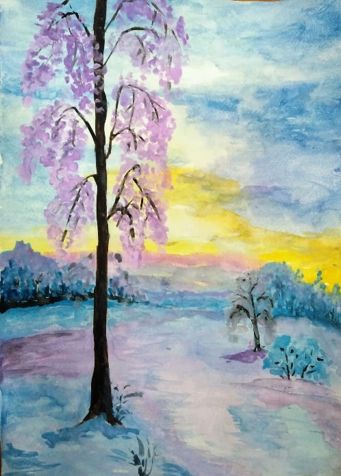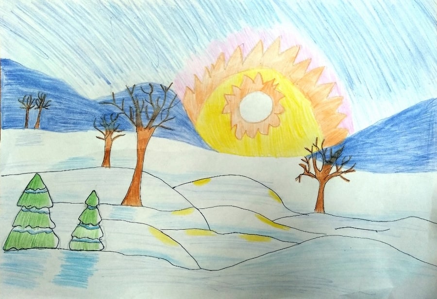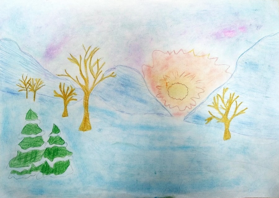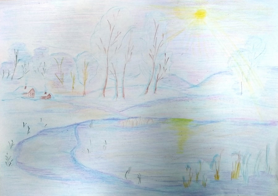 Ярким дополнением к минуте памяти, посвященной классику, стали иллюстрации школьников с зимними пейзажами, рожденные под впечатлением от поэтических образовАлександра Сергеевича Пушкина.