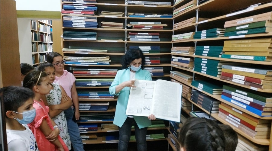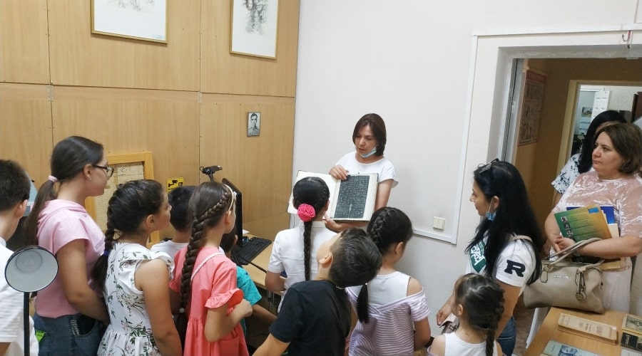 При посещении отдела редких книг, архивных и рукописных материалов детям показали книжные памятники, оригинал «Терджимана», продукцию типографии Гаспринского, довоенные учебники и сборники на родном языке.