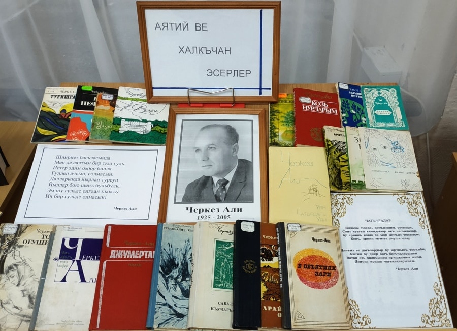 Библиотекарями отдела обслуживания пользователей была подготовлена книжная выставка «Аятий ве халкъчан эсерлер» («Жизненные и народолюбивые произведения»), отражающая жизнь и творчество писателя.