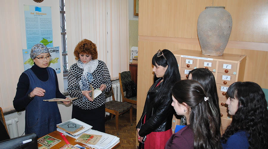 В этот день сотрудники библиотеки провели для гостей ознакомительную экскурсию. Студенты психолого-педагогического факультета (Коррекционная педагогика. Спецметодика преподавания детской литературы) и факультета истории, искусств и крымскотатарского языка и литературы Крымского инженерно-педагогического университета, а также старший преподаватель кафедры крымскотатарского и турецкого языкознания, кандидат педагогических наук Зекие Мамутова познакомились с работой разных отделов.