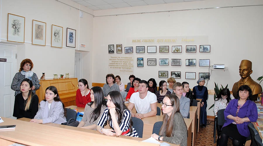 Завершая мероприятие, ведущая вечера – заместитель директора Республиканской крымскотатарской библиотеки им. И. Гаспринского показала будущим специалистамбиблиографический указатель «Дженктен эвель къырымтатар тилинде нешир олунгъан дерсликлер. 1910-1941 сс.» («Довоенные учебники на крымскотатарском языке. 1910-1941 гг.»).