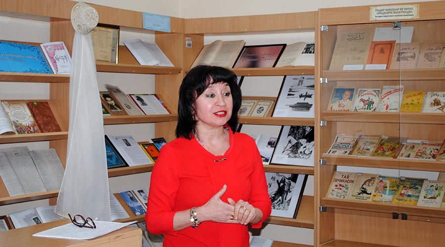 Методист высшей категории Гульнара Шосаидова представила их вниманию новую детскую литературу, заведующая информационно-библиографическим отделом Диляра Белялова –библиографический указатель «Бала эдебияты» («Детская литература»). Студентам также была презентована выставка довоенных учебников и книг из редкого фонда.