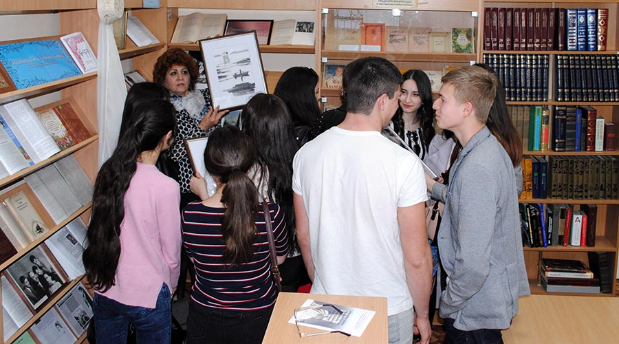 После выступления ученого был продемонстрирован буктрейлер, подготовленный на крымскотатарском и русском языках на основе цикла Максима Горького «Крымские эскизы». Студенты познакомились с выставкой графических эскизов Шевкета Кешфидинова, на основе которых создавалась эта работа.