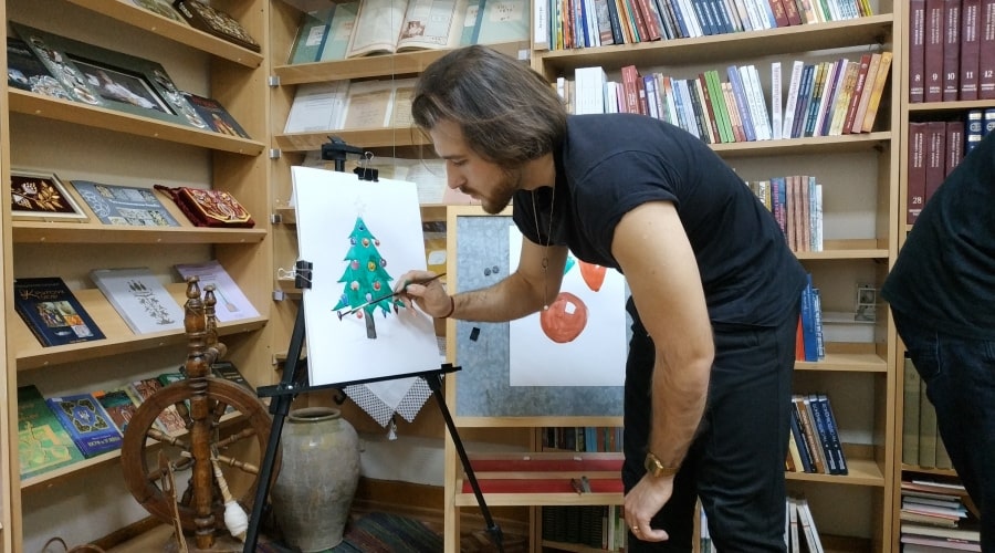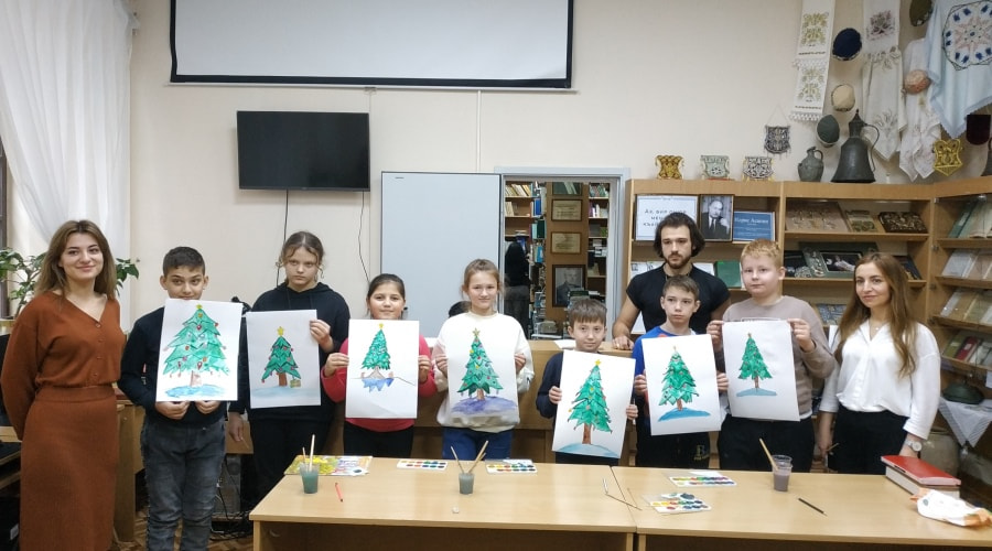 В преддверии новогодних праздников юные гости рисовали нарядную елку. По окончании мероприятия была сделана общая фотография участников с их работами.