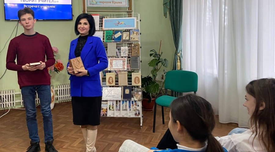 В Год педагога и наставника и в рамках районного проекта «Библиотека+Школа: содружество идей» в Раздольненской центральной районной библиотеки им. А.И. Домбровского состоялась встреча с учителем «Весь этот мир творит учитель».