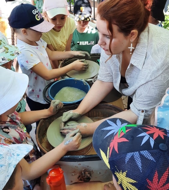 Студентка 4-го курса кафедры Ксения Ермакова познакомила участников мероприятия с азами гончарного искусства и научила создавать композиции из глины.