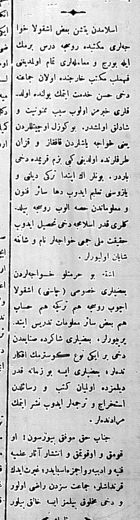 [Ислямдан етишен базы школа оджалары русча дерс бермекнен бирге талебелерге эдебият ве санайы дерслерини бергенлери акъкъында]. – Текст : непосредственный // Терджиман. – 1889. – Дек. 10 (№ 43). – С. 90.