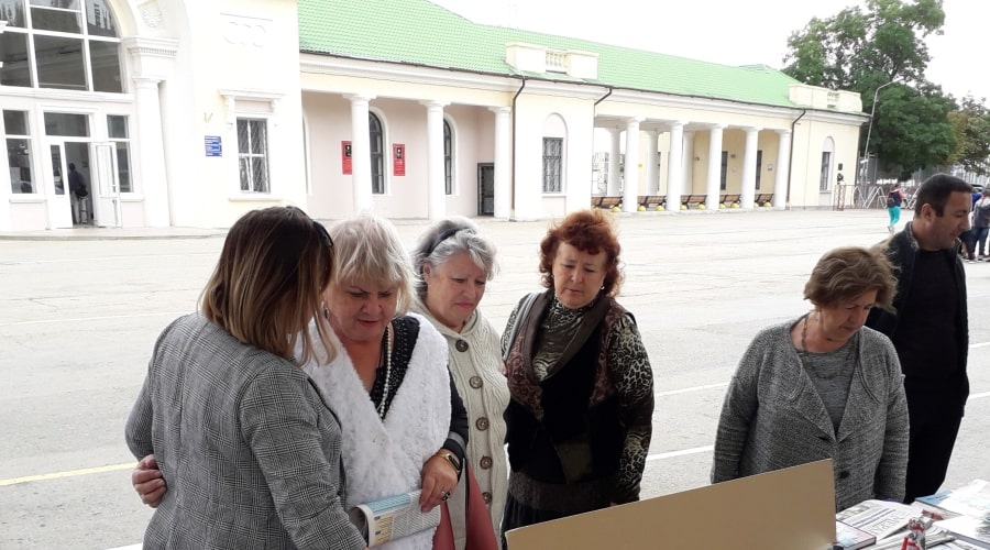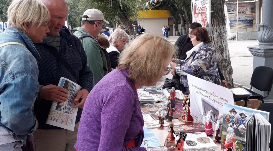 Неподдельный интерес у присутствующих вызвали материалы по истории костюма народов, проживающих в России и Крыму, в частности, каталог «Костюм народов России в графике 18–20 веков», подаренный библиотеке представителем Российской государственной библиотеки искусств и этноколлекция кукол.