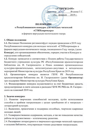 11 февраля 2019 года в Библиотеке стартовал Республиканский конкурс для молодых читателей «СТИХопремьера» в формате виртуально-поэтического театра.