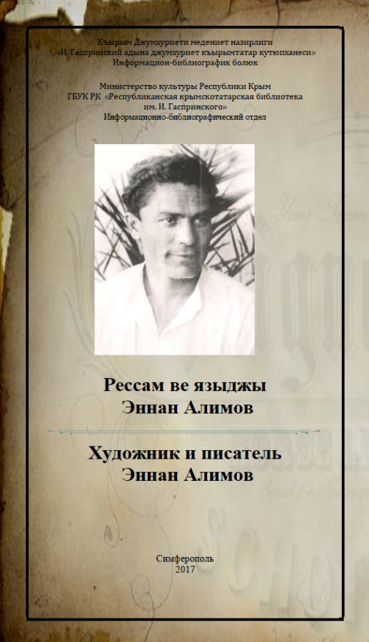 Библиографическая продукция Ресуль Ибрагимов 29.11.2017 0 Комментарии Рессам ве языджы Эннан Алимов (Художник и писатель Эннан Алимов) Для просмотра нажмите на картинку