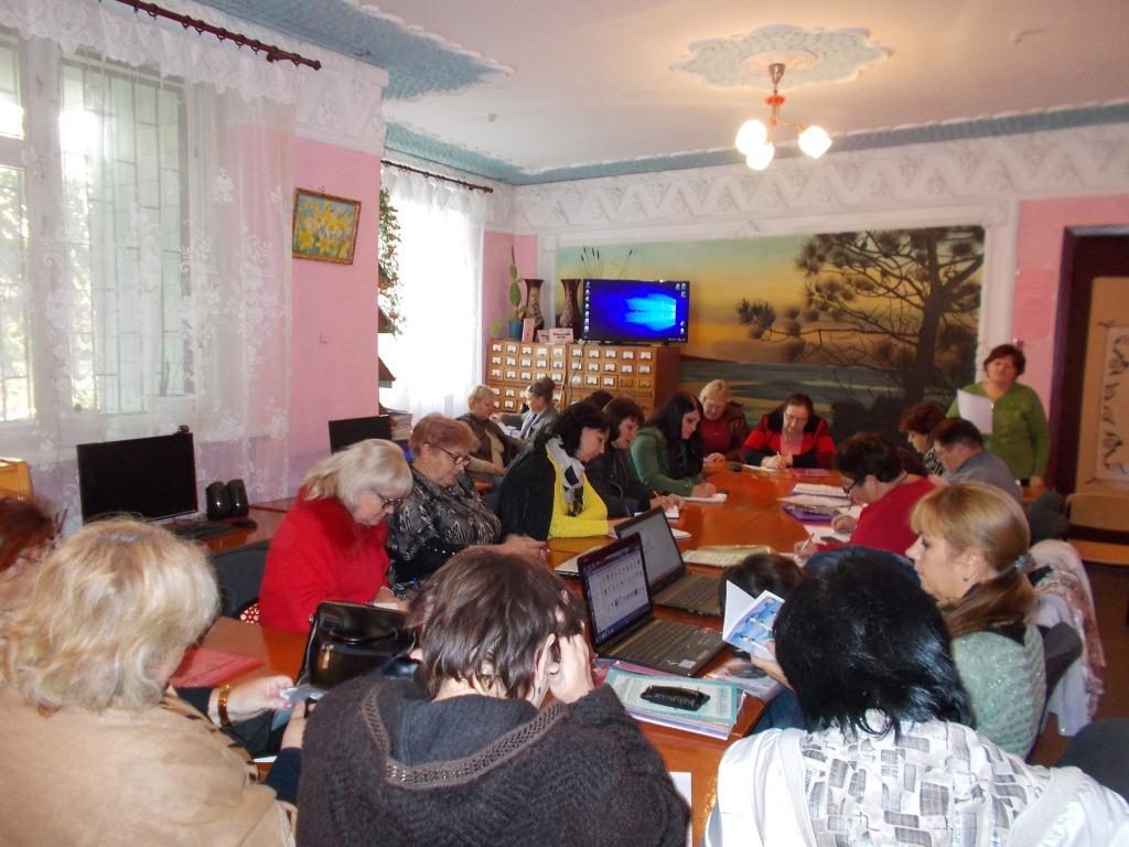 Методистом Татьяной Харченко была показана презентация «Информационные технологии в библиотеках Республики Крым». Проведён обзор методических материалов ЦБС. Библиотечные работники получили «домашнее задание» — провести мероприятие к 100-летию Октябрьской революции.