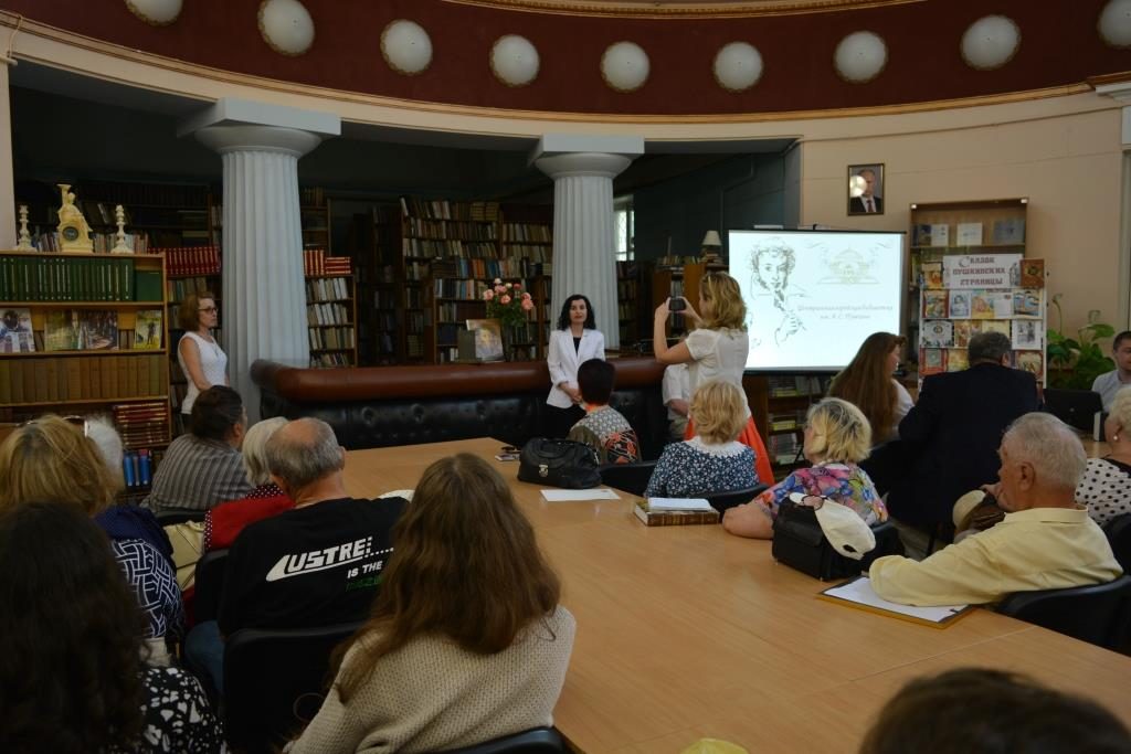 6 июня 2018 года ведущий методист методического отдела Республиканской крымскотатарской библиотеки им. И. Гаспринского осуществила выезд в Евпаторийскую централизованную библиотечную систему и приняла участие в торжественном открытии памятника Александру Пушкину на территории Центральной городской библиотеки им. А.С. Пушкина. Ведущий методист Эльмаз Велиева поздравила евпаторийцев со знаменательным событием, отметив, что мероприятие в рамках Пушкинского дня проходит и в крымскотатарской библиотеке. Она рассказала гостям и участникам праздника о том, что в редком фонде РКБ им. И. Гаспринского хранятся довоенные издания произведений классика на родном языке в переводе Османа Акчокраклы, Эшрефа Шемьи-заде и других национальных поэтов и писателей.