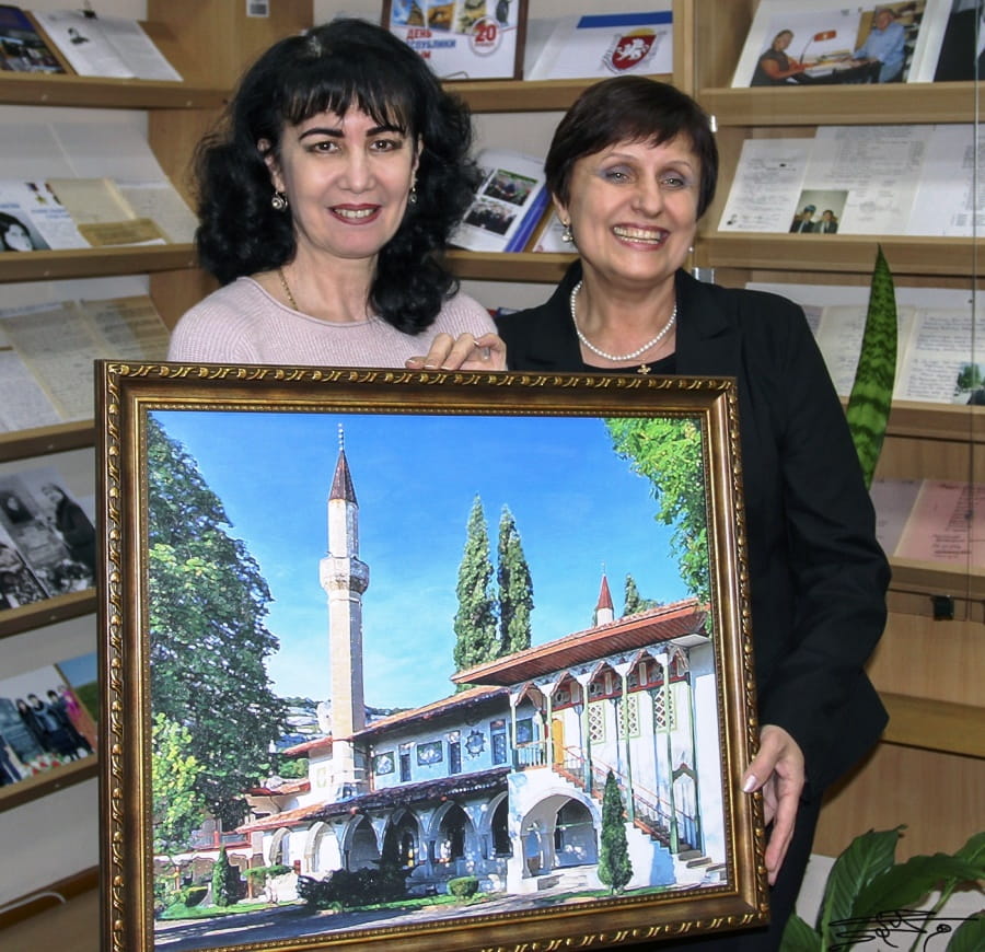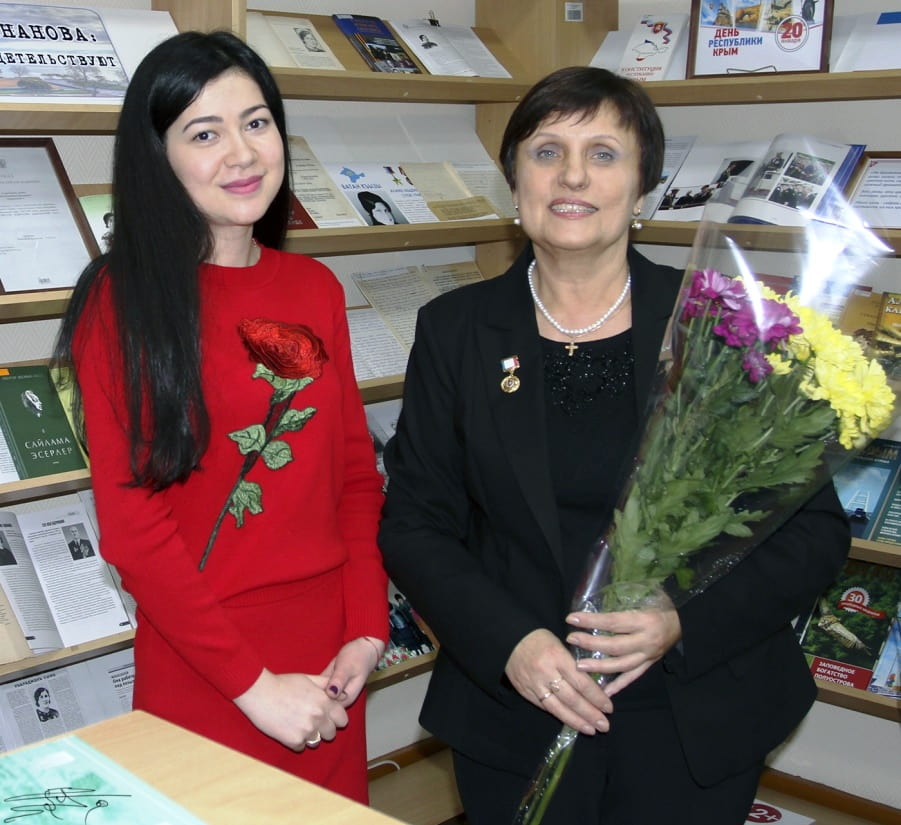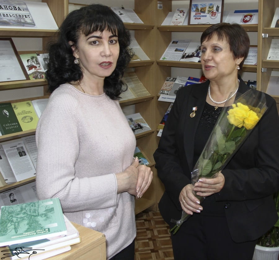 От имени начальника управления музейного и библиотечного дела Министерства культуры Республики Крым Елены Эмировой Ольгу Голубеву поздравила Эсма Аблаева.