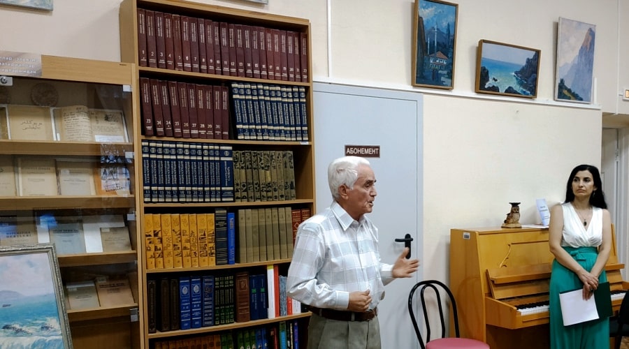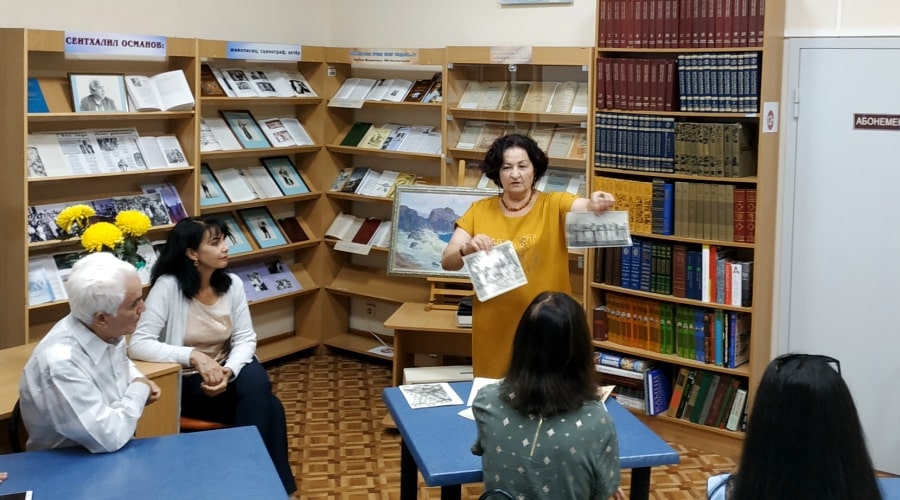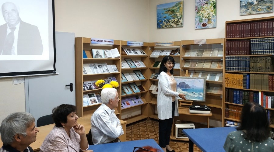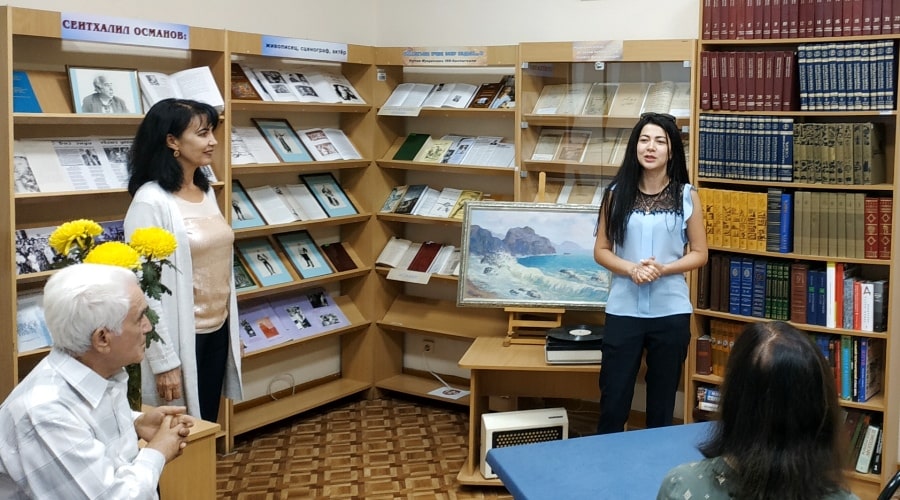 Открыла мероприятие директор библиотеки Гульнара Ягьяева. Она поблагодарила всех, кто пришел на вечер, и поблагодарила семью художника за помощь в организации юбилейного вечера.