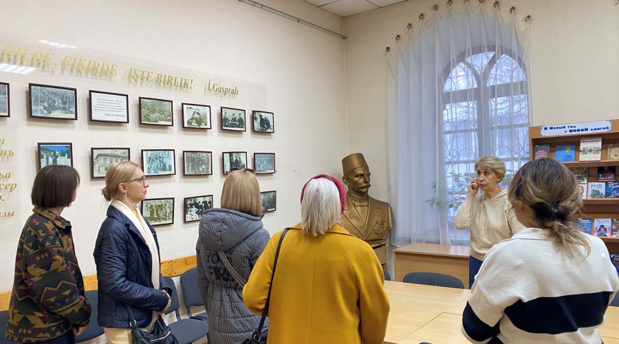 Традиционно экскурсия началась с историей здания, являющегося памятником архитектуры конца XIX начала ХХ века, жизнью и деятельностью великого просветителя и общественного деятеля Исмаила Гаспринского.