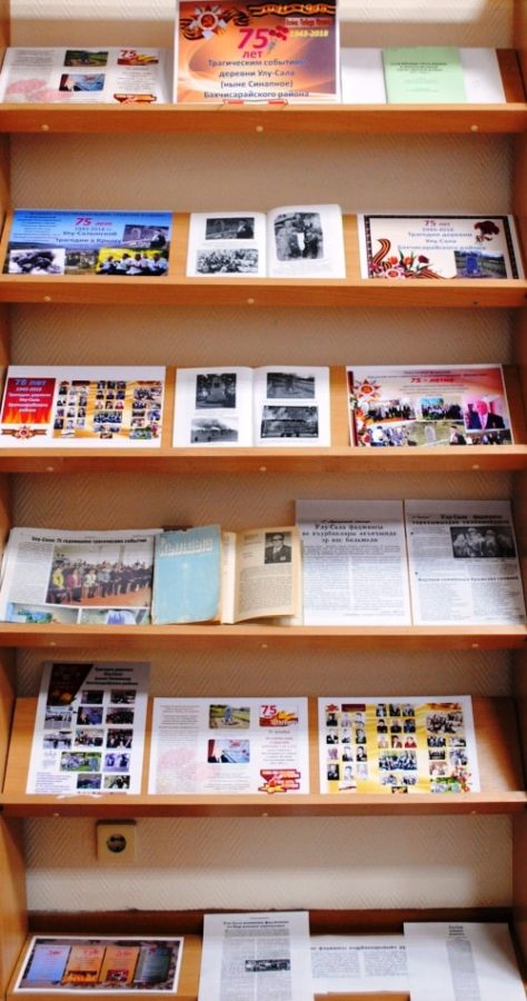На основе фондов Республиканской крымскотатарской библиотеки имени Исмаила Гаспринского сотрудниками библиотеки была организована книжная выставка «Улу-Сала: фаджиа юреклерде яшай» («Улу-Сала: трагедия живёт в сердцах») с материалами по истории этой деревни.