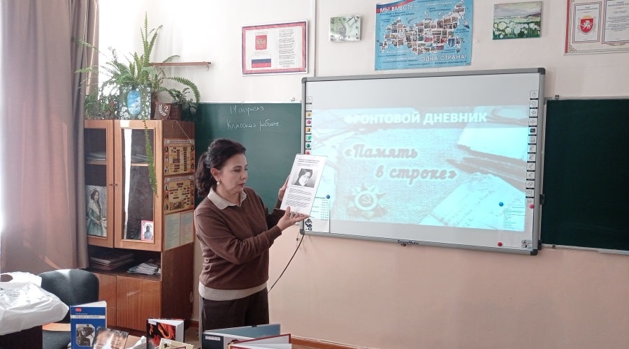 Урок мужества завершился презентацией виртуального проекта Фронтовой дневник «Память в строке», который обновляется на сайте библиотеки в течение тематического года, посвященного 80-летию Победы.