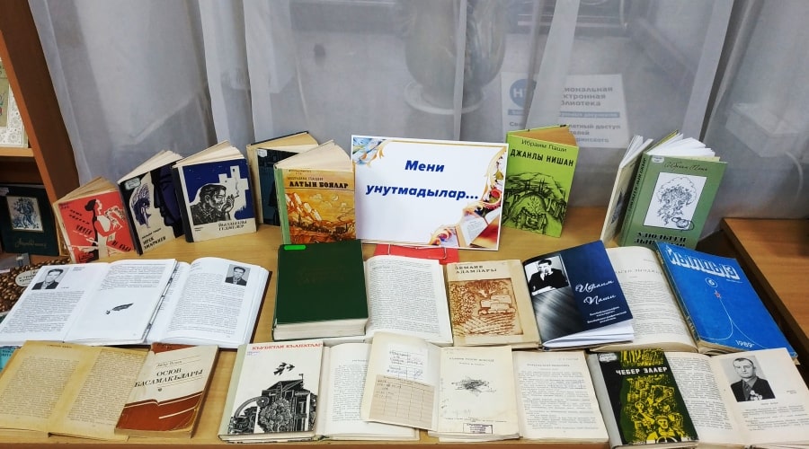 Вниманию присутствующих была представлена книжная выставка-портрет «Мени унутмадылар…» = «Не забыли обо мне…», на которой представлены книги и периодические издания из фондов библиотеки.