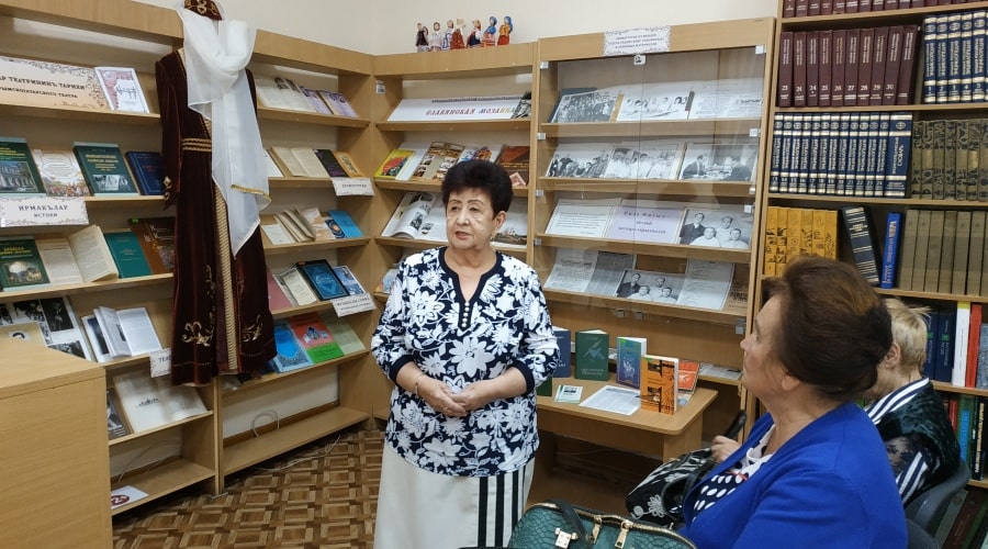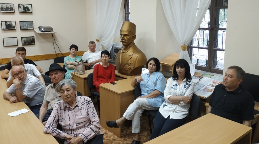 Ведущая мероприятия – заместитель директора Лейля Кадырова – предоставила слово гостям. Председатель ассоциации крымскотатарских работников образования «Маариф» Сафуре Каджаметова рассказала о сотрудничестве организации с литераторами, в числе которых был и Риза Фазыл, представив вниманию аудитории совместные фотографии.