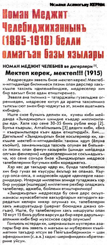 Биз Номан Челебиджиханны сиясий ве диний рехбер, истидатлы шаир, атешин натыкъ оларакъ билемиз. 2022 сенеси профессор Исмаил Керимов Номан Челебиджиханнынъ 1915-1916 сенелери «Терджиман» газетасында дердж олунгъан бир къач макъалесини кирил уруфатына акътарып «Янъы дюнья» газетасында бастыргъан эди. Шу макъалелер Номан Челебиджиханны маариф, тасиль мевзуларыны теренден бильгенини косьтермектелер.