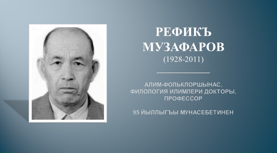 25 декабря 2023 г. Республиканская крымскотатарская библиотека имени Исмаила Гаспринского при поддержке Министерства культуры Республики Крым в рамках Десятилетия науки и технологий в Российской Федерации к 95-летию со дня рождения учёного-фольклориста, доктора филологических наук, профессора Рефика Музафарова был представлен виртуальный обзор «Алим-фольклоршынас, филология илимлери докторы, профессор Рефикъ Музафаров (1928-2011)» («Учёный-фольклорист, доктор филологических наук, профессор Рефик Музафаров (1928-2011)».