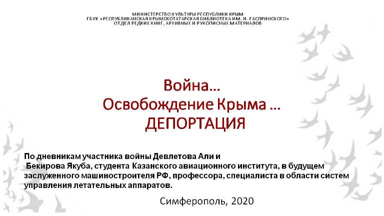 Продукция отдела редких книг, рукописных и архивных материалов Новости admin 18.05.2020 0 Комментарии Война… Освобождение Крыма… ДЕПОРТАЦИЯ